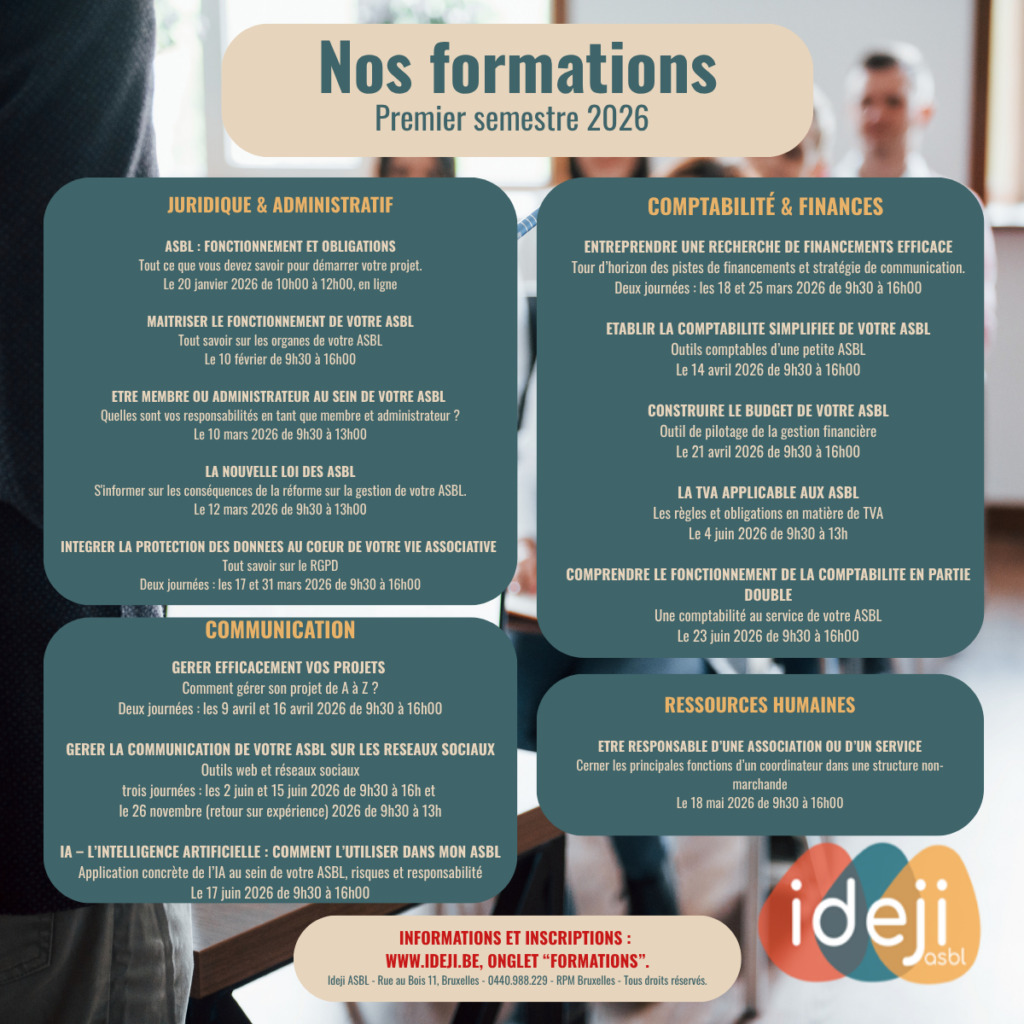 Ideji vous propose un ensemble de fiches d’information et des modèles de documents destinés à vous aider dans la gestion de votre ASBL.